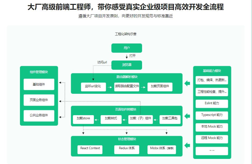 状态管理一直是前端开发中的重点和难点,尤其针对大型复杂项目,状态管理的设计好坏,更关乎项目开发的质量高低。本课程借助一个企业级平台项目的开发,带大家掌握React Context、 Redux、 Mobx 等三大常用 React 状态管理方案,由浅入深,从使用到深度解析源码,力求透彻全面地掌握状管理,让它不再成为你通往高级前端开发路上的绊脚石。