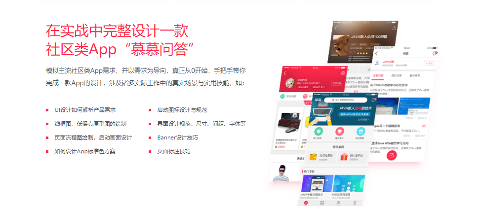 不同于其它只教给你设计技能的课程,本课程将带你从产品的高度实战UI设计,以产品需求为导向,按真实项目流程进行实战,遵循主流的设计规范与标准,一步步完成APP设计,让你真正成为一个具有产品经理思维的“设计师”。