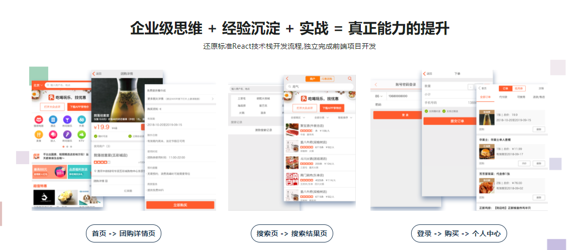 本课程先以简单案例,快速学习React、Redux的核心思想和用法,然后选取真实大众点评 WebApp 为实战案例,从整体架构分析开始,介绍项目的分析、搭建、具体开发、以及最终的项目上线,最终独立完成中等复杂度项目的前端架构设计。