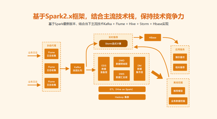 这是一门既讲算法原理又有完整的推荐系统架构的全能课。解决普通的算法课“欠缺从实际场景转化到模型应用的过程”的问题,让大家不仅懂算法原理,更懂如何实施落地。 课程结合算法原理,利用Spark 2.x 和主流技术栈,通过Flume多级高可用日志收集用户行为,使用HBase特征向量存储,利用算法原理结合Spark和Storm进行离线和实时推荐,实现图书电商场景下的个性化推荐系统。