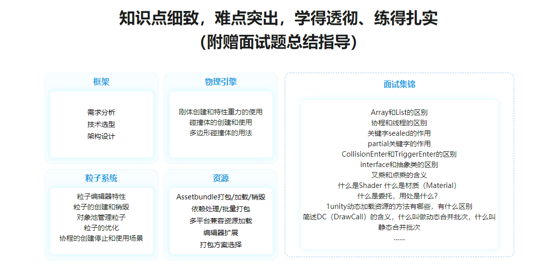 游戏市场再次掀起新的浪潮,人才紧缺,薪资诱人。Unity作为当下爆火的游戏开发引擎,非常适合对游戏开发感兴趣的人员入行!但Unity易上手难精通,本课程将带大家在项目实战中快速掌握游戏开发全流程,及Unity核心技术,最终拥有一款属于自己的线上游戏作品。