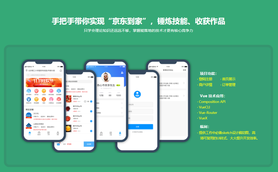 谁说为0基础准备的课,就一定浅薄?本课程带你轻松入门、深度掌握 Vue3,夯实前端硬技能。课程从 Vue3 基础语法,到组件原理,动画,代码设计,再到新语法扩展,由浅入深,全面、系统地梳理 Vue 知识点。在学习过程中,还有老师多年的“避坑经验”倾囊相授 ,并在最后带你按照企业级别代码质量和工程开发流程完成“京东到家”应用,实现对框架的彻底掌握。