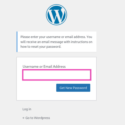 2.输入您的 WordPress 用户的用户名或电子邮件地址,然后单击“获取新密码”