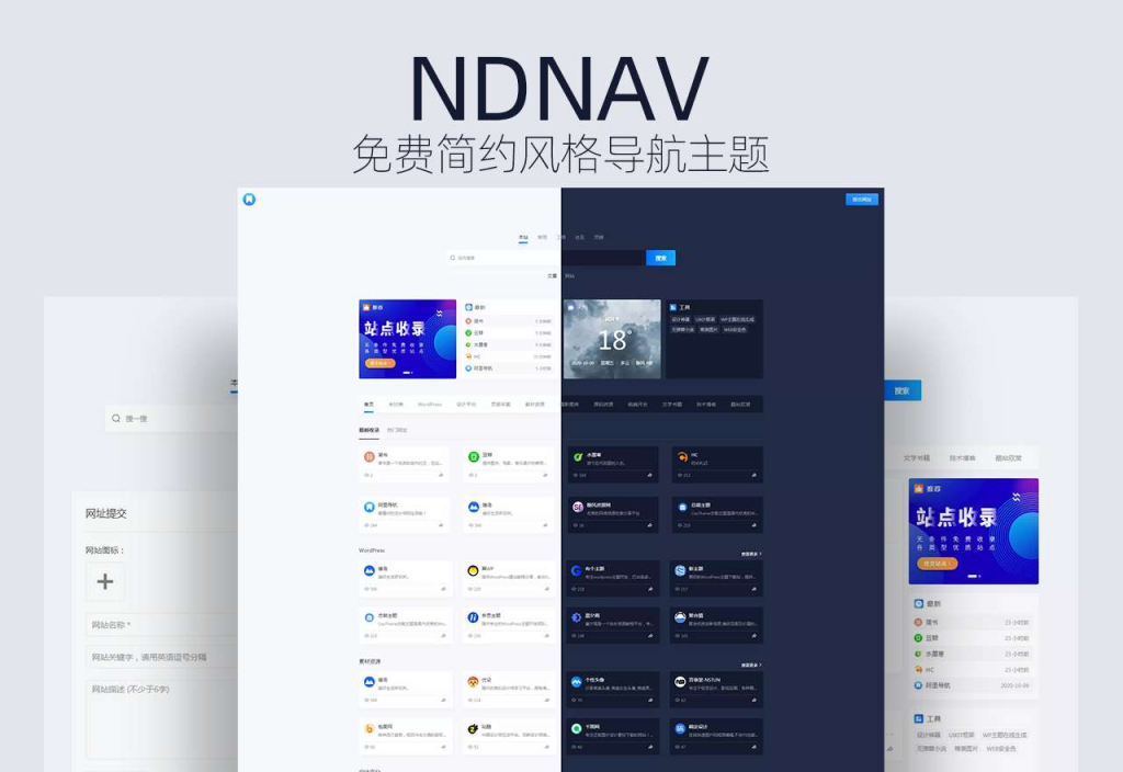 NDNAV主题是由暖岛站长(阿叶)开发的一款简约大气的昼夜WordPress免费导航主题,这款主题界面、功能都比较简洁。