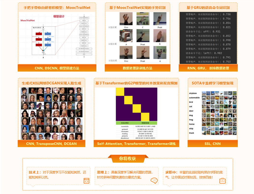 想要成为一名优秀的深度学习工程师并不容易,一看就会,一用就废,已然成为很多人进军AI 领域的心魔,自以为理解了框架、算法,但遇到实际问题却仍不知道该怎么解决。本门课程将结合核心基础、算法模型设计和实用案例,由浅至深、由理论到实操,带你紧跟行业热点,系统入门深度学习,掌握解决实际问题的能力,轻松畅游AI时代!